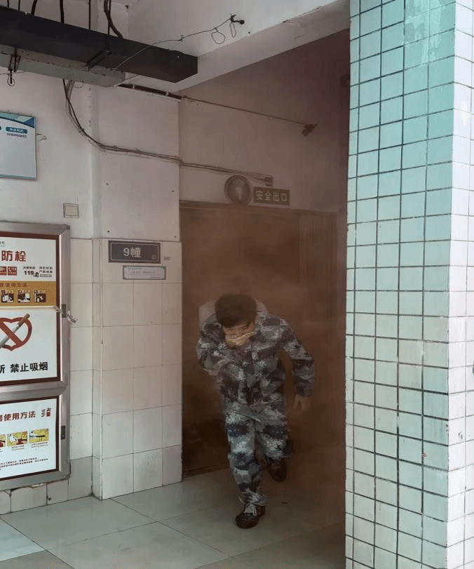 随着警报声响起,消防安全应急演练正式开始。同学们按照逃生路线,用毛巾捂住口鼻,低姿势弯腰前行,从寝室内有秩序的沿着指定路线撤离到安全地带,各宿舍长快速清点人数,并层层向上汇报情况。整个过程井然有序、安全迅速。