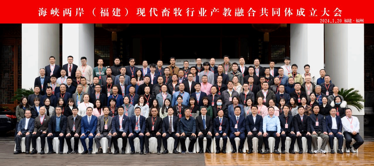 共同体成立大会于2024年1月20日在福建省福州市梅园国际大酒店胜利召开,共同体第一届理事会共105家单位:本科高校2所、科研院所1家、省内外高职院校17所、中职学校7所、畜牧养殖企业46家、宠物企业28家、学(协)会4家,其中台湾企业10家。