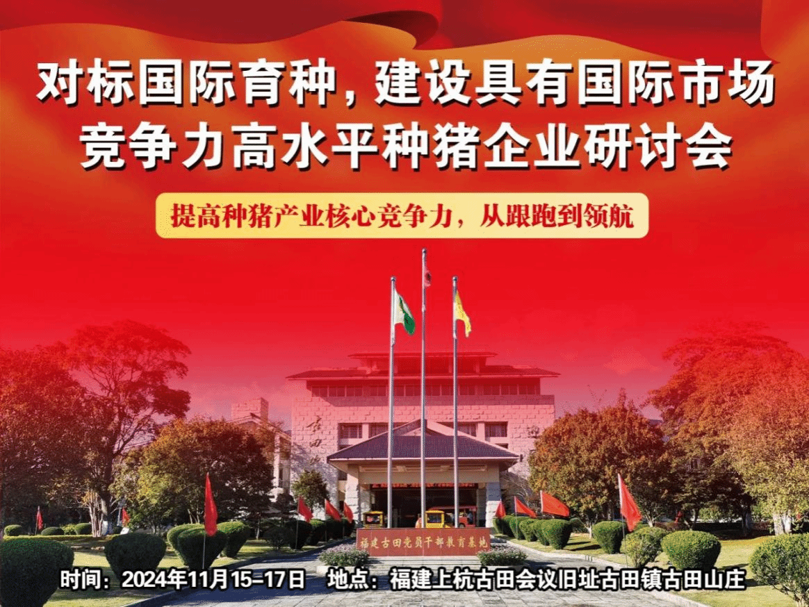 为进一步推动海峡两岸现代畜牧行业的发展,加强行业间的交流与合作,提升种猪产业的国际竞争力,由中国种猪信息网&《猪业科学》超级编辑部主办,海峡两岸(福建)现代畜牧行业产教融合共同体、国家现代猪业产教融合共同体、福建省畜牧业协会猪业分会、福建省畜牧兽医学会养猪学分会联合主办的“对标国际育种,建设具有国际市场竞争力高水平种猪企业研讨会”将于2024年11月15日至17日在福建上杭古田会议旧址古田镇古田山庄举行。
