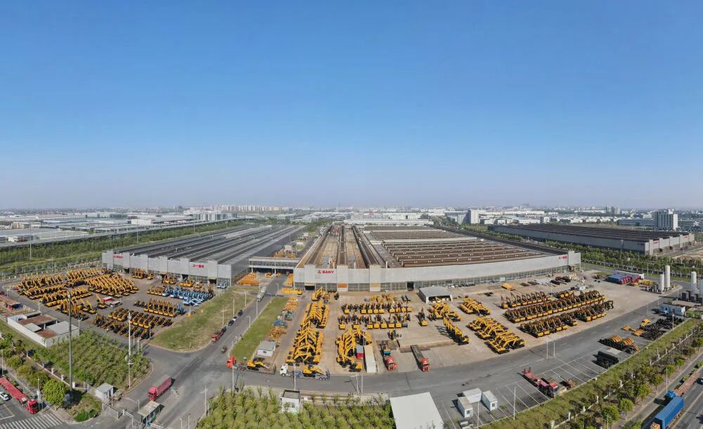空中俯瞰上海三一重机股份有限公司外景(无人机全景照片,2025年4月15日摄)。新华社记者 方喆 摄