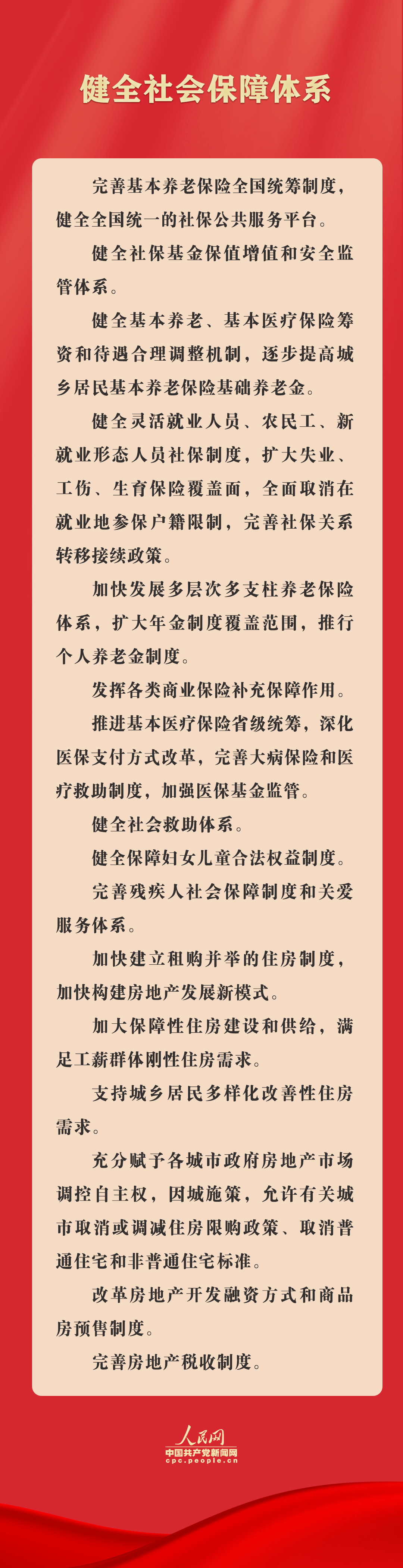 7月21日,《中共中央关于进一步全面深化改革、推进中国式现代化的决定》(以下简称《决定》)全文发布。《决定》在健全保障和改善民生制度体系方面,提出完善收入分配制度,规范收入分配秩序;健全灵活就业人员、农民工、新就业形态人员社保制度,全面取消在就业地参保户籍限制;提出加快构建房地产发展新模式,充分赋予各城市政府房地产市场调控自主权等。
