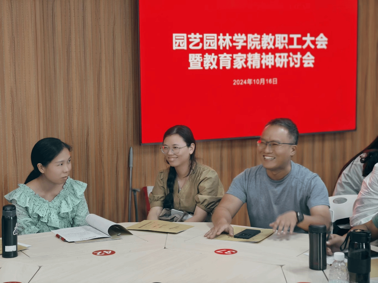 2024年10月16日下午,园艺园林学院在园艺智慧中心开展师德师风专题学习暨教育家精神主题座谈会,园艺园林学院全体教职工参加了此次活动。活动以“大力弘扬教育家精神,加快建设教育强国”为主题,同时也是园艺园林学院“匠心工程”系列师德师风品牌活动之一。学院党总支书记徐捷主持此次会议,全体教职工积极参与。会议围绕习近平总书记重要讲话精神、教育家精神和先进师德模范的学习展开了深入讨论。