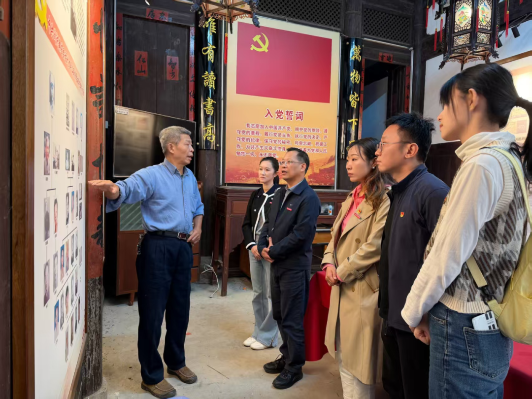 在中共闽浙赣省委福州太平山联络总站旧址——高家大院,全体党员重温革命岁月。这座曾作为秘密联络站的古老院落,承担过传递情报、转运物资、掩护同志等重要使命。高家后代高文忠先生现场讲述隐蔽战线的历史,将大家带回那段风雨如磐的岁月。通过观看历史文物、阅读文献资料,党员们深刻感受到革命先辈对党忠诚、严守纪律、不怕牺牲的伟大精神,体会到党的纪律在艰苦斗争中的决定性作用。