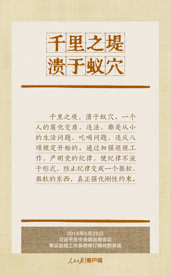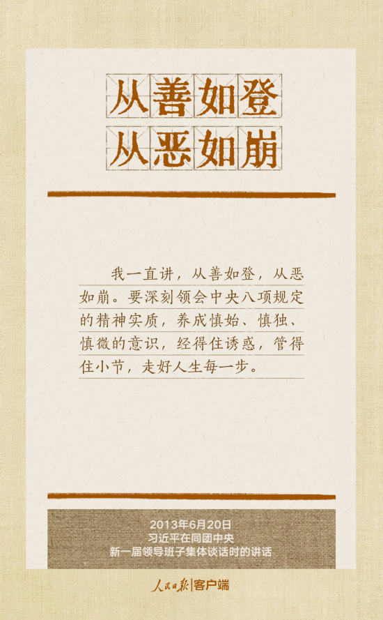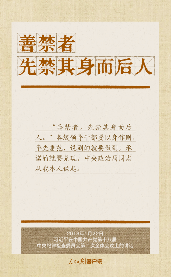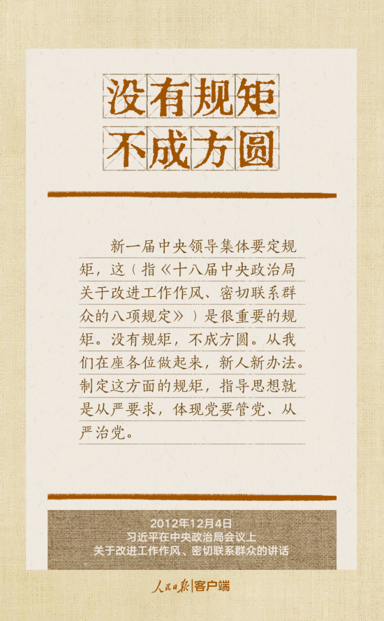 党的十八大以来,习近平总书记多次就抓好党的作风建设、贯彻落实中央八项规定精神发表重要讲话,作出重要批示,提出明确要求。“没有规矩,不成方圆”、“己不正,焉能正人”、“尽小者大,慎微者著”……总书记引用的这些古语耐人寻味。