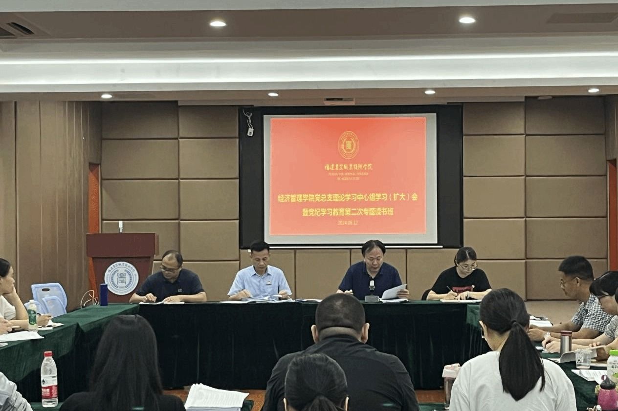 6月12日下午,经济管理学院党总支召开理论学习中心组学习(扩大)会暨党纪学习教育第二次专题读书班。