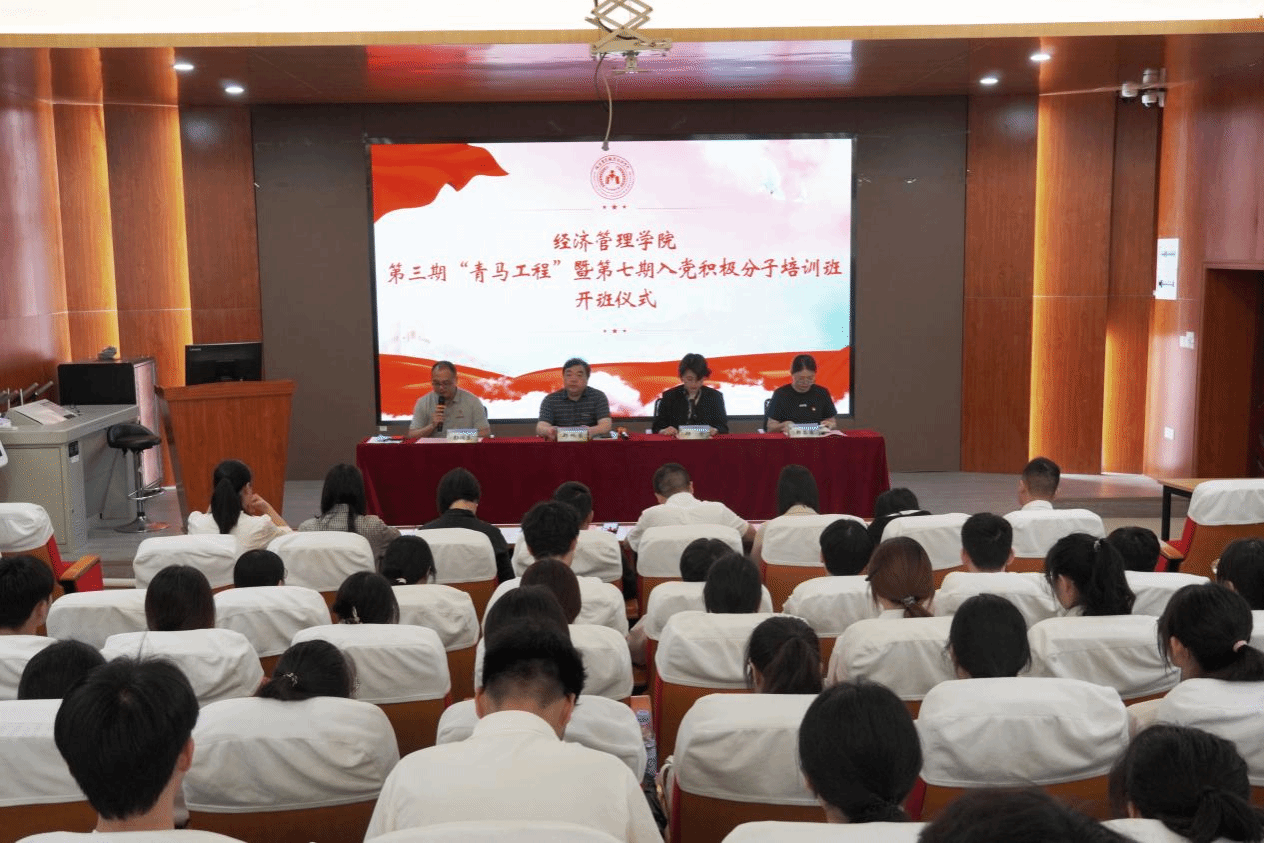 2025年4月23日上午9时,经济管理学院第三期“青马工程”暨第七期入党积极分子培训班开班仪式正式举行。学院领导班子、全体辅导员、部分党员教师代表以及培训班全体学员共同参与了此次活动。