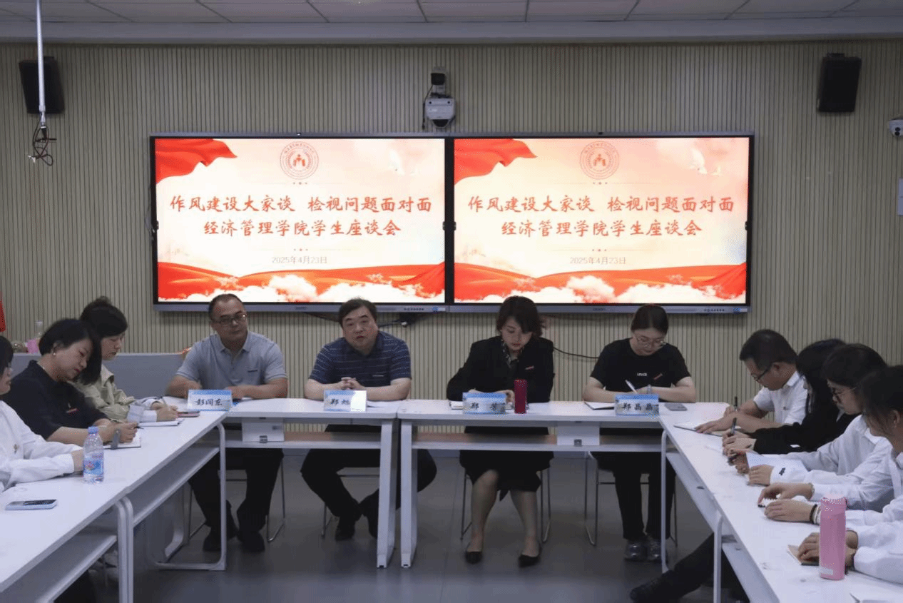 为积极践行党建引领作风建设要求,2025年4月23日,经济管理学院组织召开“作风建设大家谈,检视问题面对面”学生座谈会。学院领导班子、党员教师代表以及各年级学生代表参加了本次座谈会。通过面对面交流的形式,聚焦解决在校大学生的急难愁盼问题,以实际行动推动学院工作提质增效。