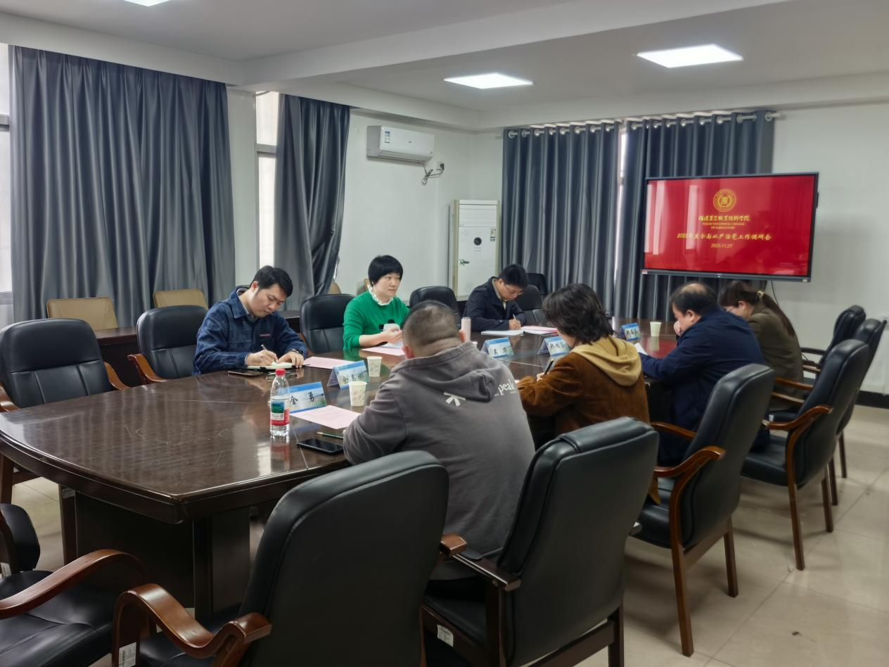会上,郑旭东书记首先代表学院作2025年度落实全面从严治党主体责任情况汇报,从组织建设、思想建设、作风建设、制度建设等关键方面,系统阐述了学院在全面从严治党工作中的举措、成效及存在的问题和不足。