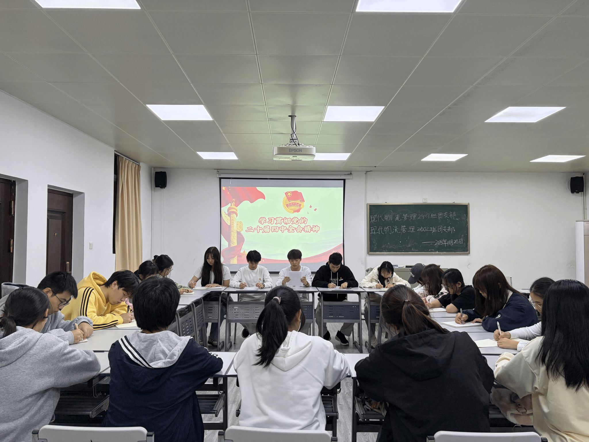 为深入学习贯彻党的二十届四中全会精神,2025年11月,经济管理学院团委组织各团支部及团学干部集中开展了“深入学习党的二十届四中全会精神”主题团日活动,引导广大团员青年准确把握全会核心要义,深刻理解“十五五”时期国家发展的战略部署,推动全会精神在学院团员青年中走深走实。