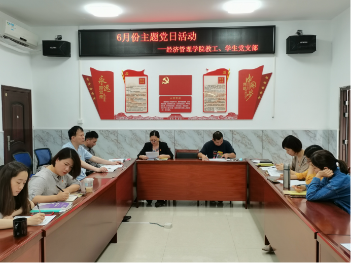 2022年6月8日下午,经济管理学院教工党支部与学生党支部在第二会议室联合开展了六月份主题党日活动,学习习近平总书记在庆祝中国共产主义青年团成立100周年大会上的讲话、习近平总书记给南京大学留学归国青年学者的回信、习近平总书记重要文章《正确认识和把握我国发展重大理论和实践问题》以及习近平总书记主持十九届中共中央政治局第三十九次集体学习时的重要讲话精神。