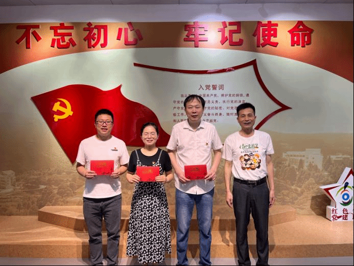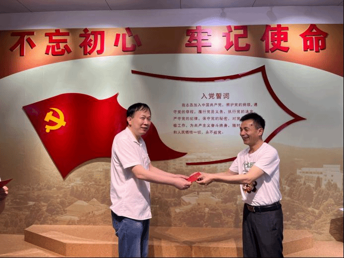 宣誓室里,党员们还为6、7月份入党的同志们庆祝政治生日。经济管理学院党总支杨承亮书记为几位党员颁发了政治生日贺卡。随后,在侯志宏副校长的带领下,全体党员重温了入党誓词。
