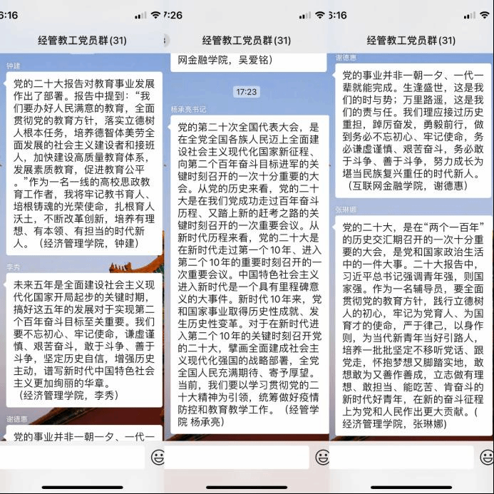 与会师生一致表示,党的二十大精神为今后的工作学习提供了更好的遵循,未来将认真学习贯彻落实好党的二十大精神,以良好的精神状态和优异的工作成绩,为全面建成社会主义现代化强国贡献自己的一份力量。