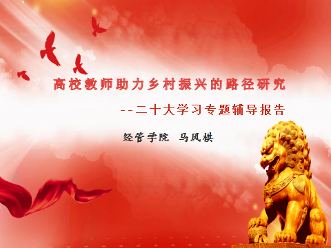 接着,马凤棋副院长围绕“高校教师助力乡村振兴的路径研究”这一主题做二十大学习专题辅导报告。马凤棋副院长从高校教师队伍助力乡村振兴的重要意义、任务、存在的困难等方面展开宣讲,并提出建设思路。