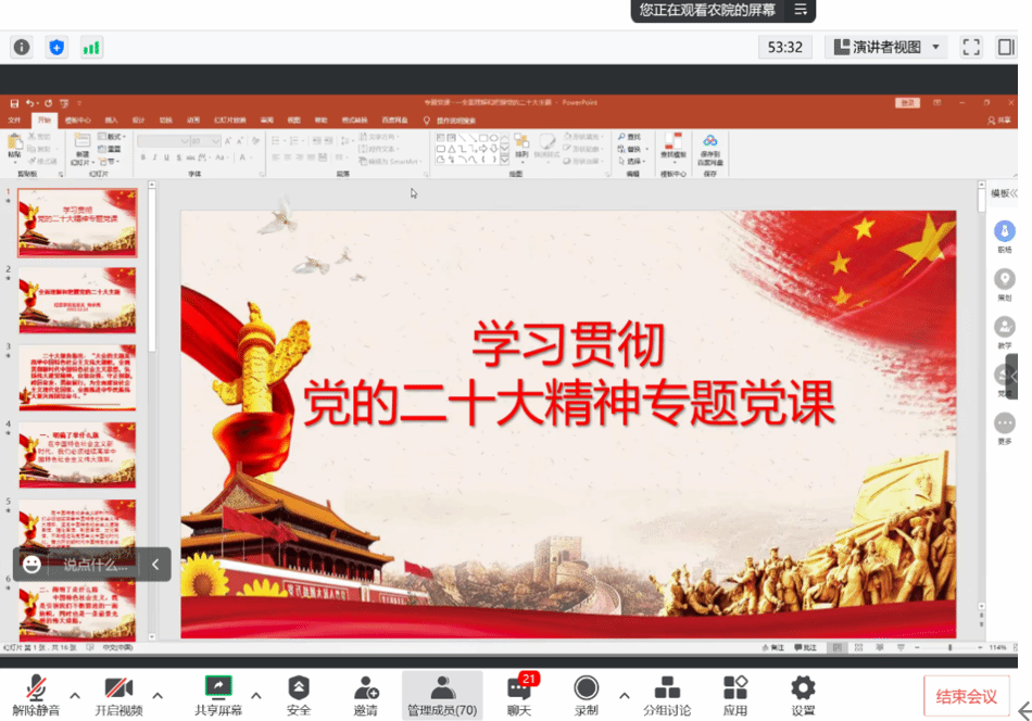 12月23日,经济管理学院党总支通过线上的方式开展了一次特殊的二十大学习专题党日活动。经济管理学院全体师生党员参加了本次活动。