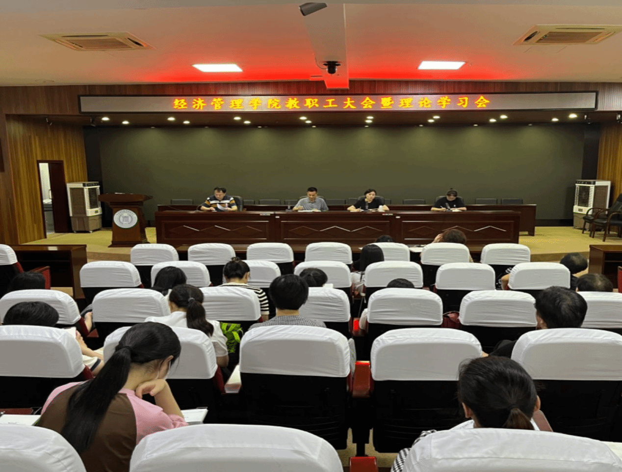 为进一步规范教师职业行为,严格落实教师职业行为十项准则要求,全面提高教职工职业道德水平,打造德才兼备的高素质队伍。经济管理学院于9月4日、9月27日召开教职工大会开展师德师风警示教育。