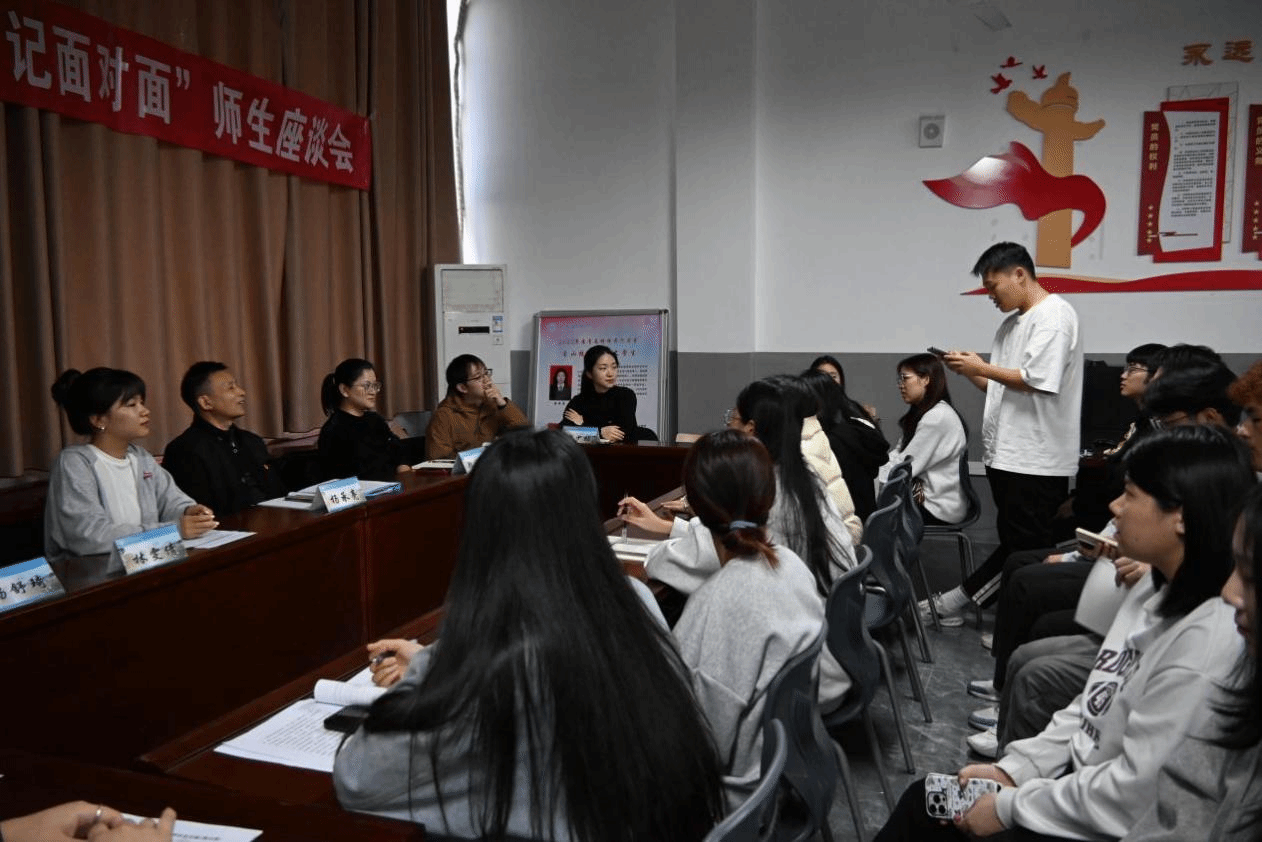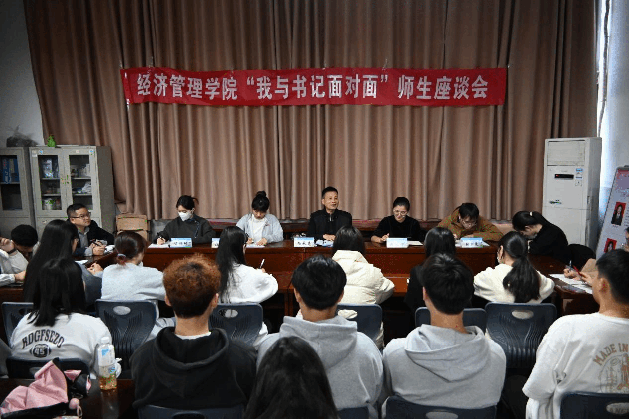 为了更好了解同学们的所思所想所惑,增进师生的情感交流,加强同学们的思想政治观念,拉近老师与学生的距离,营造和谐育人环境。2023年12月14日,经济管理学院在相思岭校区举办了“我与书记面对面”师生座谈会。经济管理学院党总支杨承亮书记、经济管理学院辅导员老师、各团支部团员代表、少数民族学生代表和青年学生代表参加了本次座谈会,座谈会由林雯倩老师主持。