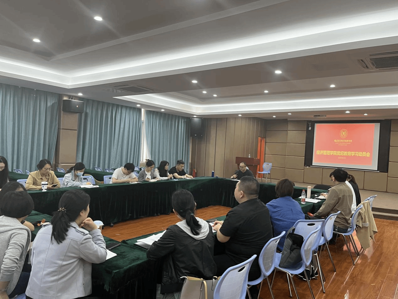 2024年4月24日下午,经济管理学院党总支于创业大讲坛组织召开党员大会,就我院党纪学习教育进行部署动员。会议由经济管理学院党总支专职副书记彭阔东主持。