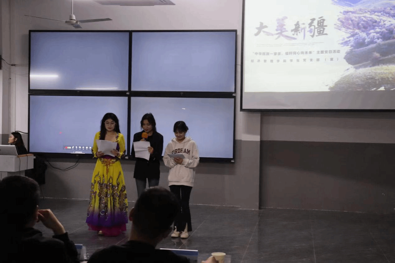 紧接着,麦力坎木·依明、古丽坚乃提·艾萨和麦日古丽·图热克等3位同学为我们带来了精彩的民族语言展示,他们详细介绍了新疆民族文化、旅游景点,让大家更加亲近和了解这片广袤土地上的文化瑰宝。新疆独特的文化魅力深深吸引了在场的同学们,现场充满了和谐温馨的氛围。