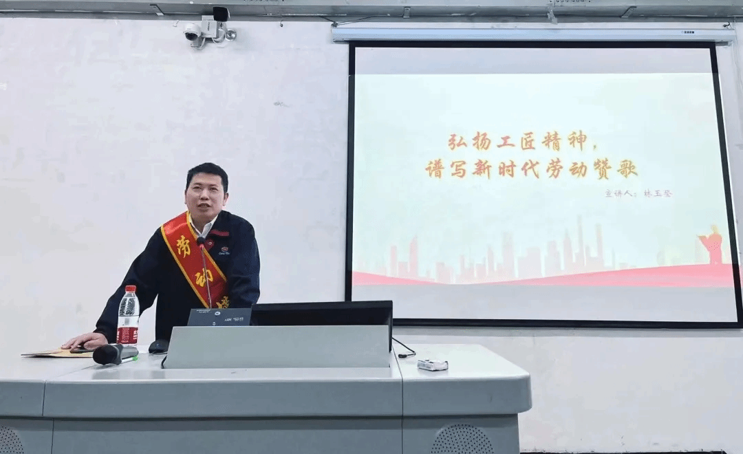 讲座上,全国劳动模范林玉登为在场的同学们介绍了自己的人生历程,并与同学们进行成长经历交流分享,他向同学们诠释了“一辈子能够专注做好一件事,便很了不起。”他强调,劳动模范就应走在前头,用坚持不懈的精神,去奋斗并创造更加美好的生活,不仅要传承好红色基因,更要在自己的事业中发扬好劳模精神、劳动精神、工匠精神。