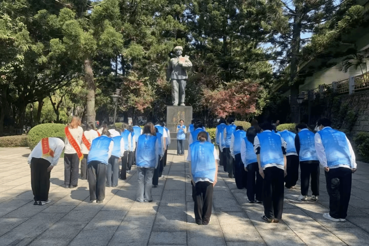在白马河公园雷锋雕像前,青年志愿者代表向参与活动的同学们宣讲雷锋动人事迹,激励同学们在新时代继续践行和发扬雷锋精神。宣讲结束后,志愿者们整齐排列,向雷锋的雕像缓缓三鞠躬,致以最崇高的敬意。而后,大家有序依次上前,献上手中鲜花,每一朵都承载着对这位“时代楷模”的深深敬仰。