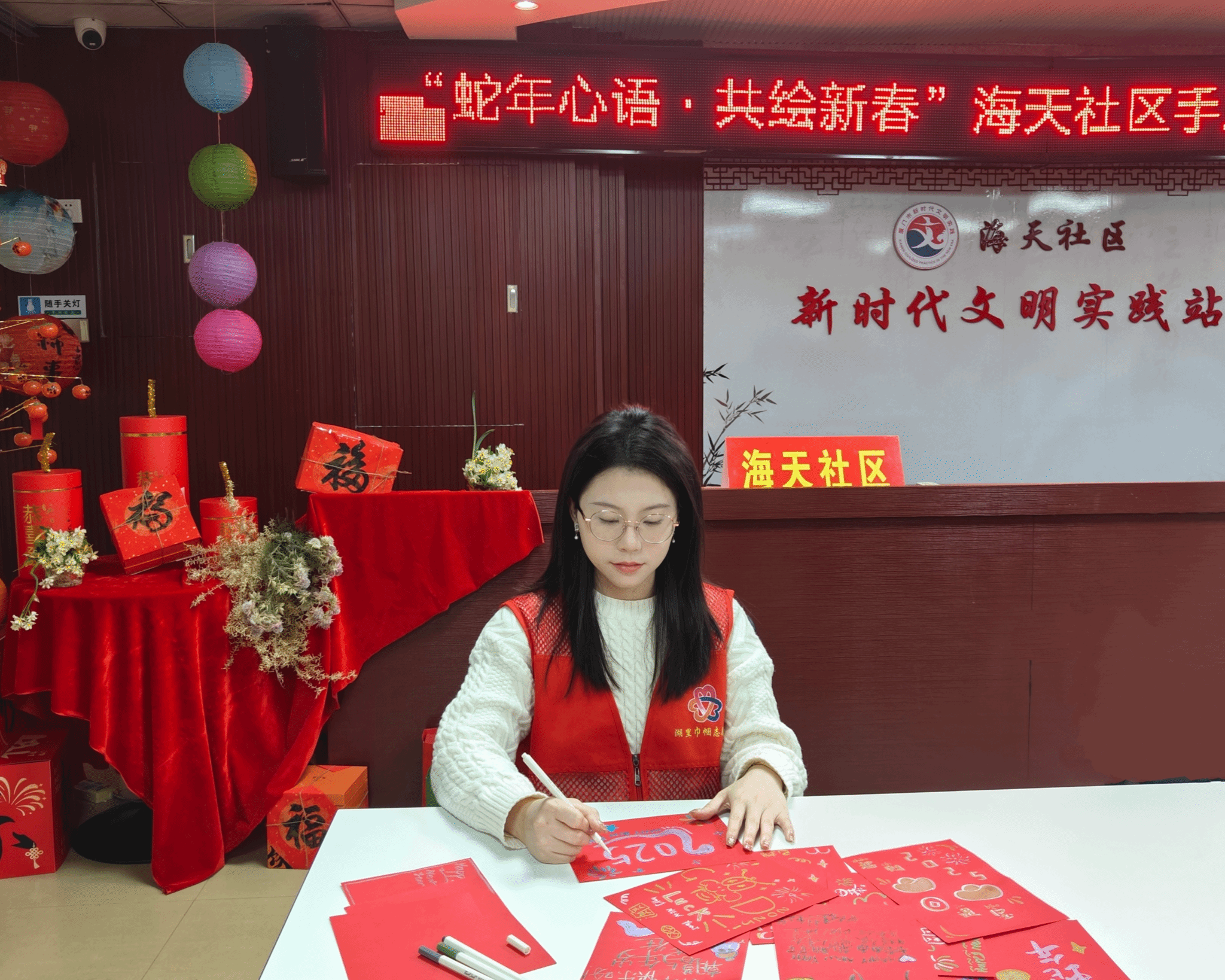 实践感悟:在2025年寒假期间,我返回家乡厦门市同安区莲花镇尾林村参与社区实践活动。实践期间,村委会正在筹备迎春工作,邀请到了两位备受尊敬的书法家,现场挥毫泼墨,书写春联,为村民送上新春祝福。此次实践让我深刻感受到传统文化在社区中的凝聚力,也提升了我的组织协调能力。