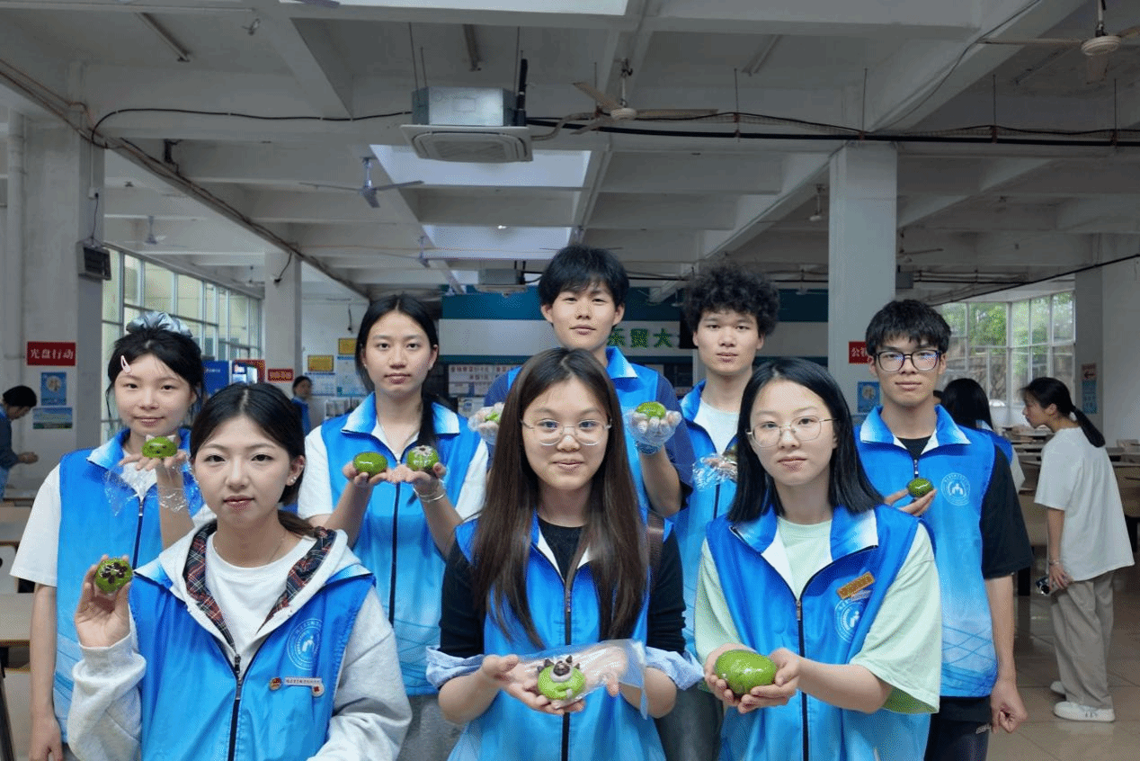 制作结束后,志愿者们将青团分给老师、同学们以及校园内的工作者们,共同享受劳动成果。同时,还邀请大家一同品鉴,评选出他们心中的“最佳作品”,为最出众的小组颁发小奖品。