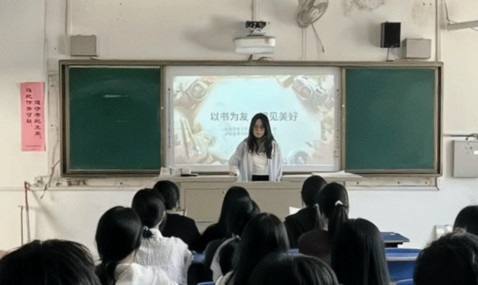 在好书分享环节,气氛逐渐升温。团员代表踊跃上台,分享了阅读的精彩内容与个人感悟。有同学畅谈《浮生六记》里沈复与芸娘的烟火日常、坎坷情路;也有同学剖析《了不起的盖茨比》中纸醉金迷下,盖茨比逐梦又梦碎的悲剧人生。