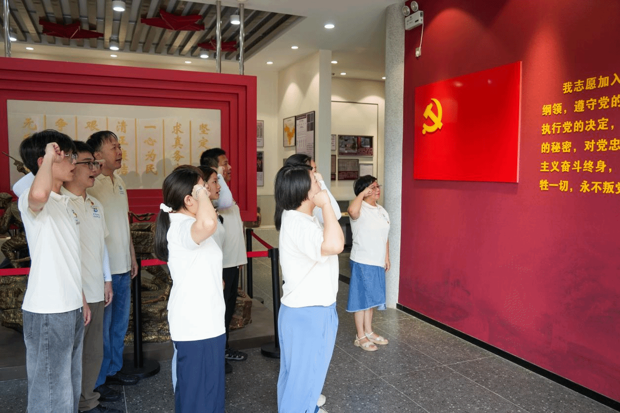 当日恰逢中国共产党成立104周年,在鲜红的党旗下,马克思主义学院王英教授带领师生党员重温入党誓词,掷地有声的承诺诠释着为共产主义奋斗终身的信念和决心。