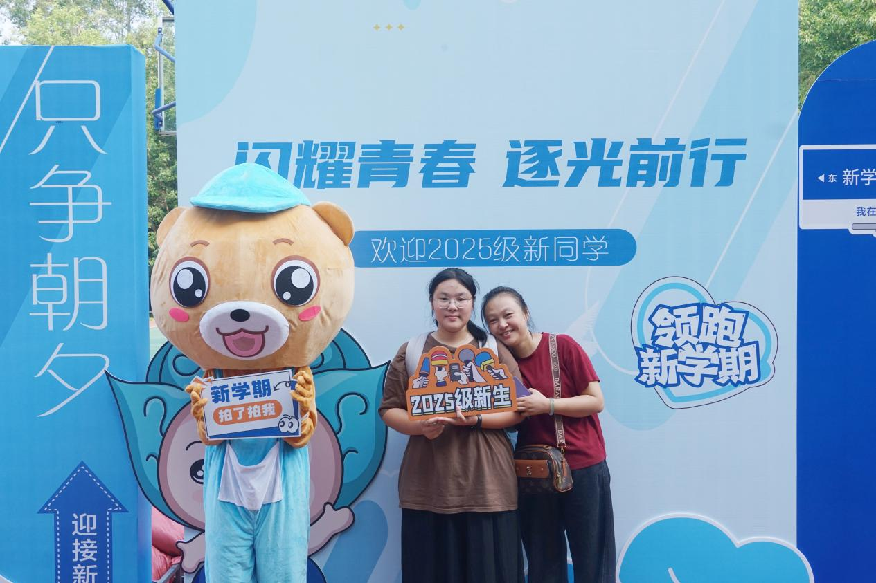 人头攒动的迎新现场,既有行李箱滚轮的轻响,也有师生间爽朗的笑声。迎新海报前,易班工作站的同学们热情引导新生手持印有俏皮标语的KT板,或与父母在打卡墙前依偎合影,或参加互动游戏。新媒体中心的记者们用镜头定格这些入学第一天的鲜活瞬间,为校园增添了青春活力。