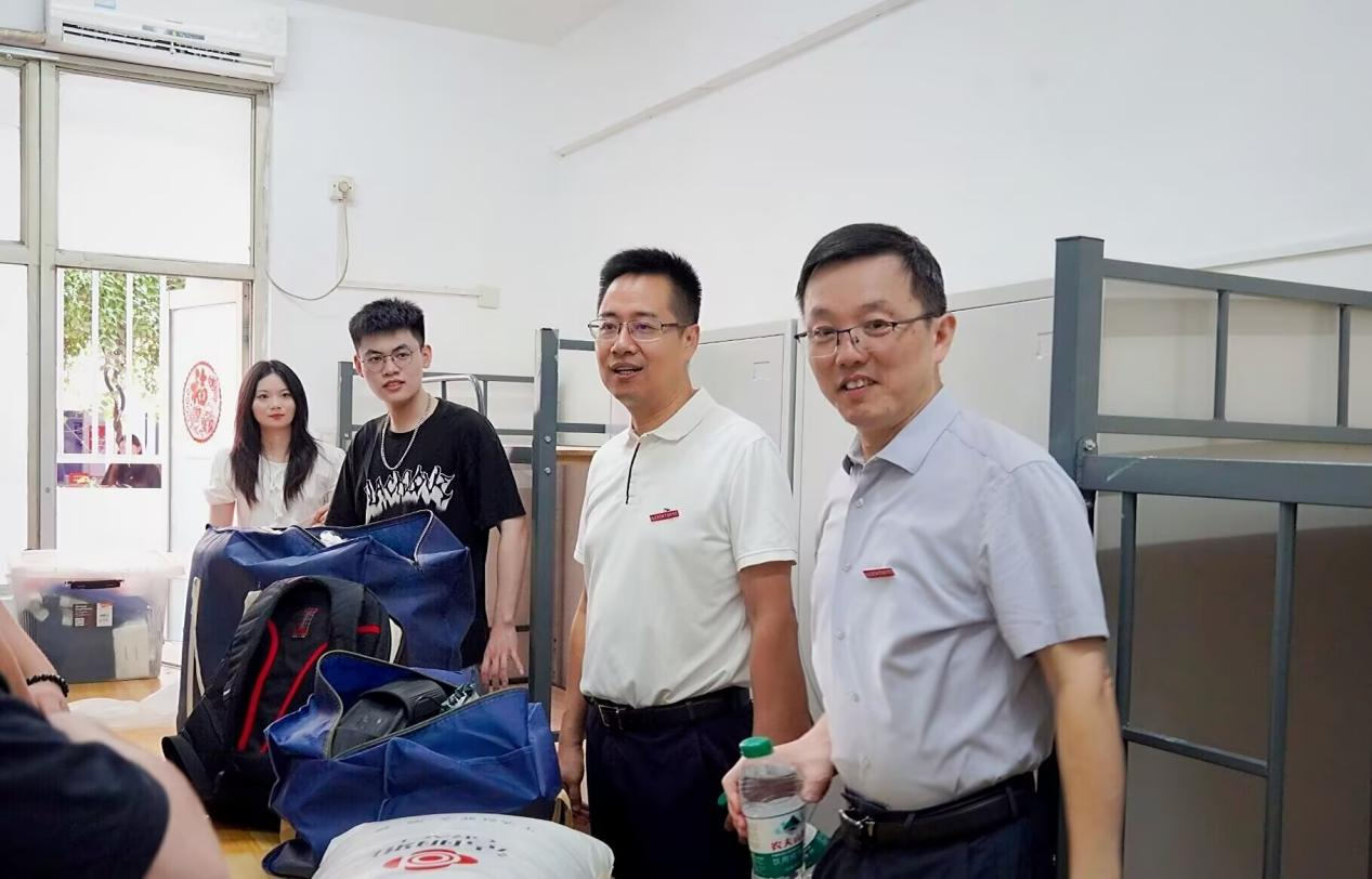 迎新当晚,经济管理学院领导班子携全体辅导员深入新生宿舍走访慰问。郑旭东书记仔细查看每间宿舍的住宿环境与设施配备,叮嘱新生“要珍惜大学时光,学会自主管理,更要与室友互助友爱,共同营造温馨和谐的集体”;郑芳院长鼓励新生“要尽快转变角色,适应大学学习节奏,在专业学习中找到热爱,在校园生活中收获成长”,殷殷嘱托中饱含期许。