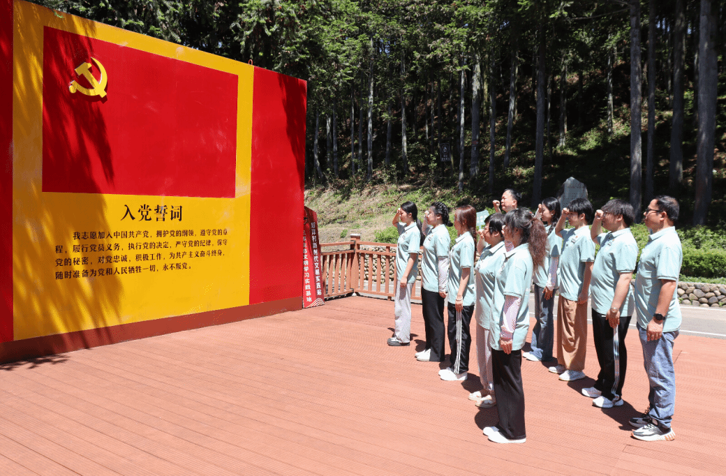 周宁县是“三库+碳库”重要理念和习近平生态文明思想的重要萌发地和先行实践地。在黄振芳家庭林场展馆和“三库” 生态文明实践主题展馆,实践队一行重温习近平总书记“三赴林场、九赴周宁”的故事,在案例与实物展示中领悟“三库”绿色生态理念的核心内涵,进行习近平生态文明思想的理论溯源,感悟黄振芳三代人的林业传承精神,了解周宁坚持“逐绿创收”的重要举措。在“森林党校”,思政指导老师王英教授深入讲解了“三库+碳库”的理论知识,引领实践队成员深刻领悟并积极践行“绿水青山就是金山银山”的生态文明理念最后,在“三棵树”学习基地,实践队全体党员面向党旗高举右拳重温入党誓词。