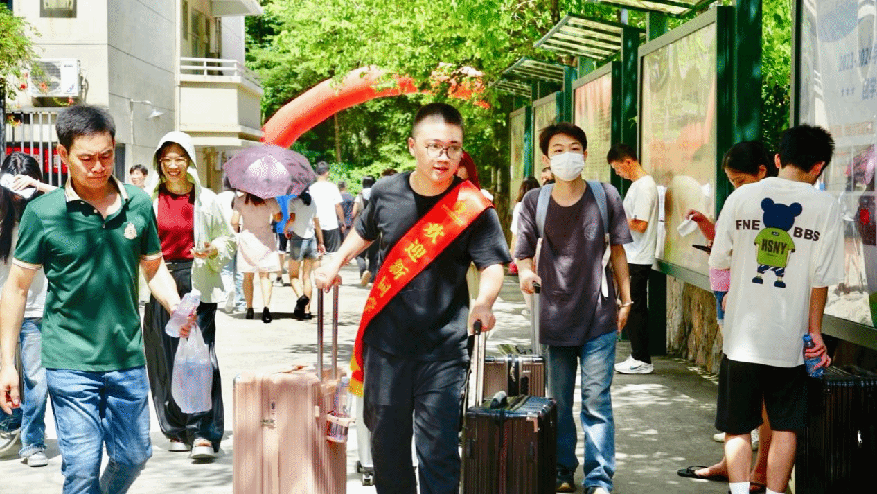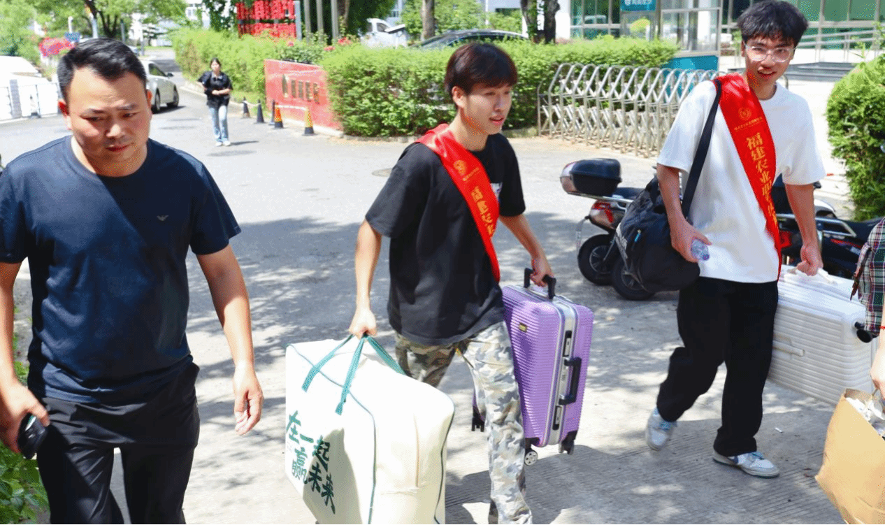 新生们陆续前来,有序地进行报到签名,新生辅导员和班导们认真接待着每一位新同学。青年志愿者忙碌的身影穿梭于报到现场和宿舍楼间,不遗余力帮助新同学们填写报到单、搬运行李、指引道路,纵然烈日灼灼,热情依然不减,让新同学们感受到如回家般的温暖。