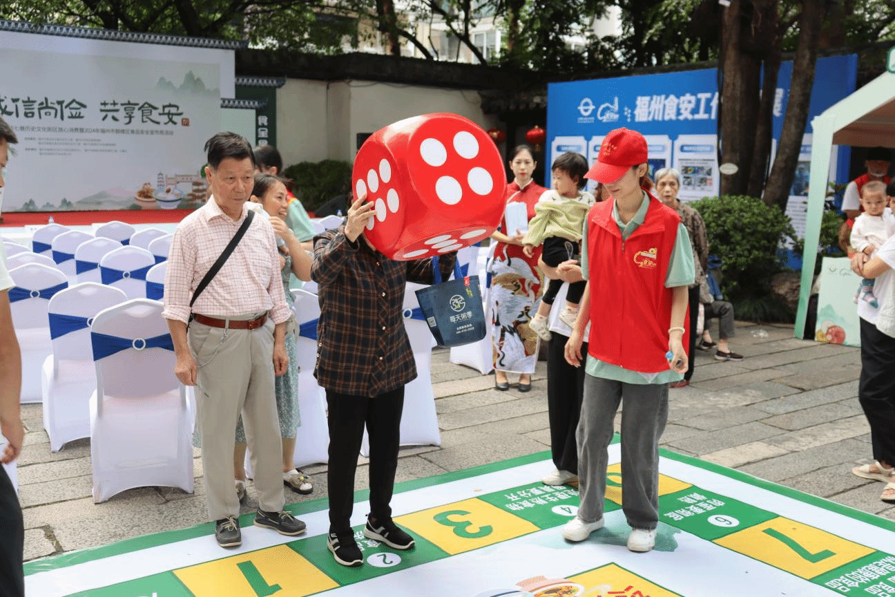 为深化民众对食品安全的理解,活动围绕“诚信尚俭,共享食安”主题,在主会场设置了多个活动区域,并设计了很多寓教于乐的小游戏。经济管理学院食品安全志愿者在食品安全宣传咨询展位,向广大福州市民群众发放宣传册,宣传食品安全知识,并解答疑问;食品安全志愿者在“食品安全我把关”“节约粮食,反对浪费”签名墙等游戏区域,陪同往来市民参与游戏吸引了不少市民驻足打卡。同时,食安博士科学小实验、有奖问答等互动环节,将活动气氛推向了高潮。