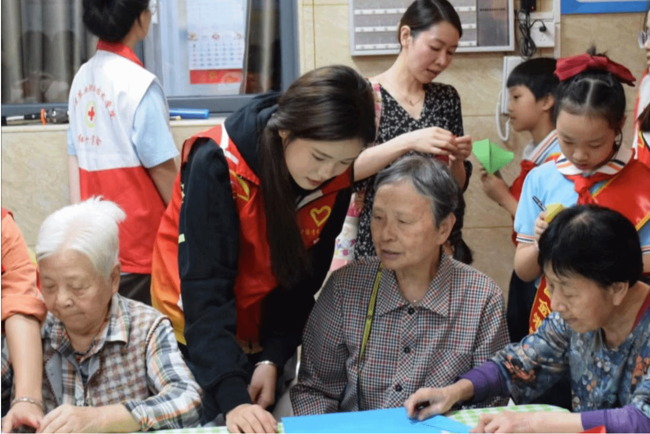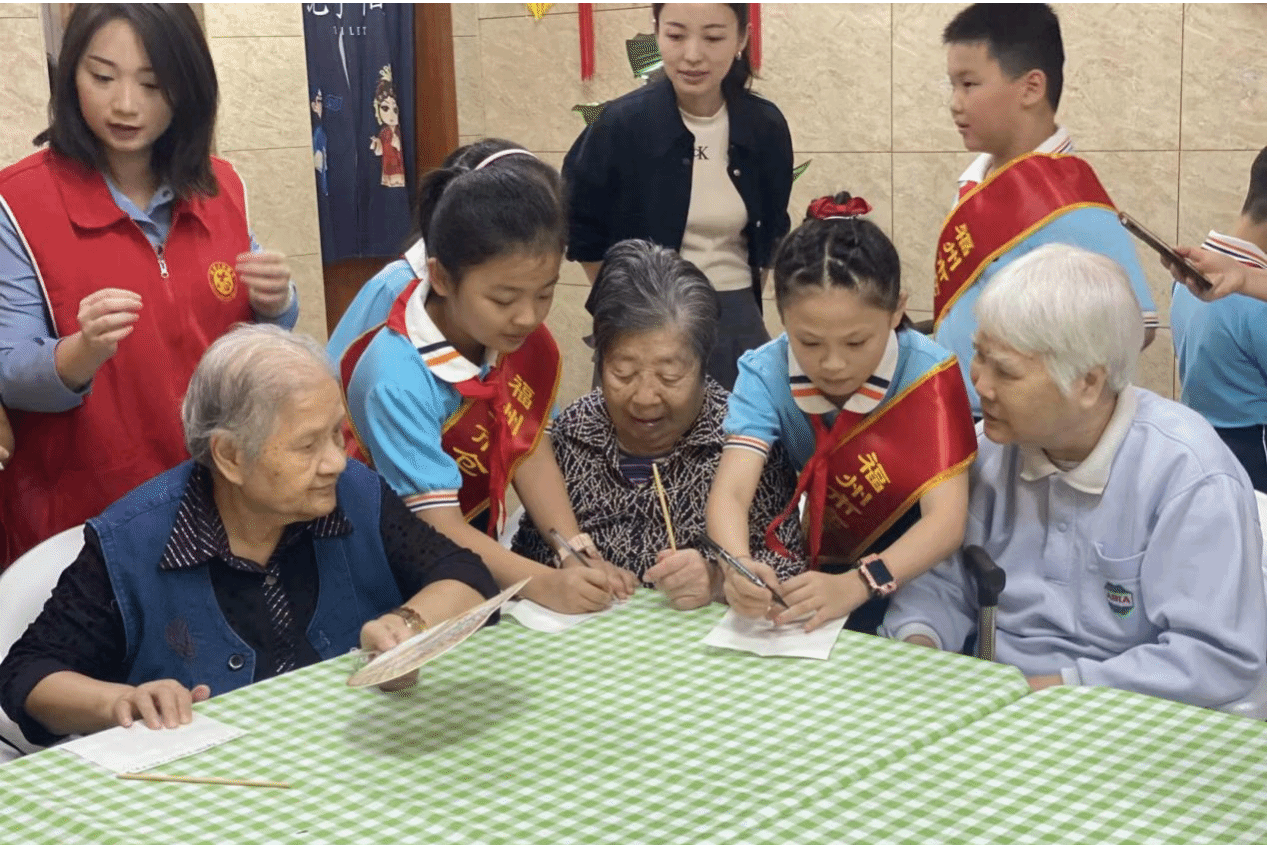 重阳节,又名敬老节,是中国的传统节日之一,定于农历九月九日。该节日蕴含着深远的寓意,倡导社会尊老、爱老、助老的风尚。志愿者们陪伴老人们进行了一系列小游戏。他们将纸张折叠成小船、爱心、千纸鹤等各种造型,随后在纸上写下自己的寄语,活动人员收集完毕后将其悬挂。游戏结束后,学生志愿者与爷爷奶奶们围坐一起,品茶、交谈,听老一辈们诉说着过往的趣事。