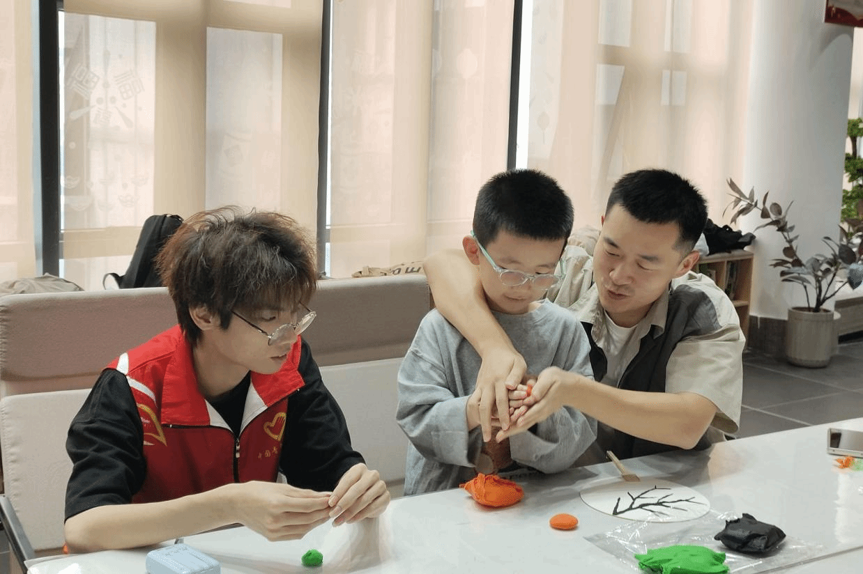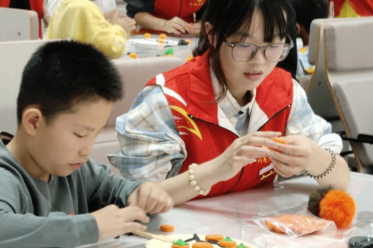 在手工制作环节中,志愿者与小朋友们共同制作黏土柿子扇。孩子们的纯真与创造力在他们稚嫩的手中得以体现,转化为一件件形态各异的黏土柿子团扇,小朋友们自豪地展示着自己精心制作的成果。伴随着阵阵欢声笑语,活动渐渐走入尾声。