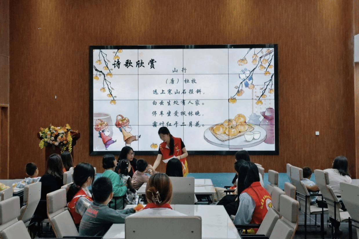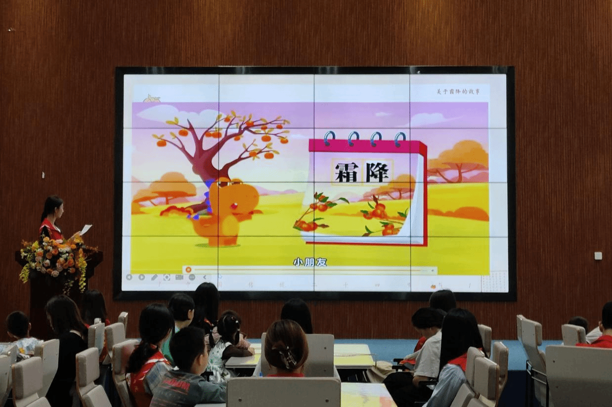 霜降作为二十四节气之一,不仅承载着赏菊、品尝柿子、登高望远等传统习俗,还蕴含着丰富的文化内涵。活动中,志愿者为小朋友们准备了知识小课堂,介绍了霜降节气的起源和相关习俗,并通过知识问答、朗诵古诗《山行》、传唱童谣《霜降》等丰富多彩的活动环节,营造了欢乐而又难忘的现场氛围。