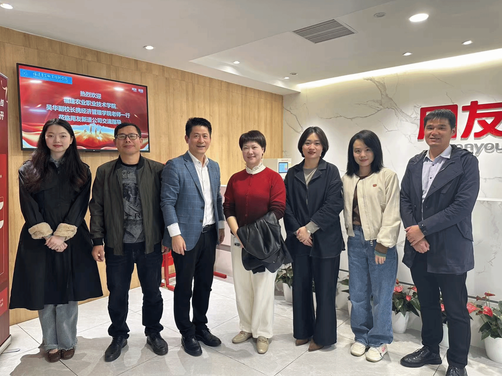 吴华副院长一行人首先走访了新道科技股份有限公司福州分公司,公司负责人对学院一行的到来表示热烈欢迎,并详细介绍了企业的发展历程、核心业务以及在数字化人才培养方面的创新模式与实践成果。吴华副院长在交流中深入了解了企业的人才需求结构与岗位技能要求,并表示学院始终致力于培养适应市场需求、具备扎实专业技能和创新精神的高素质人才,希望能够与新道科技在课程体系共建、实践教学改革等方面开展深度合作,为学生搭建通向企业的桥梁。