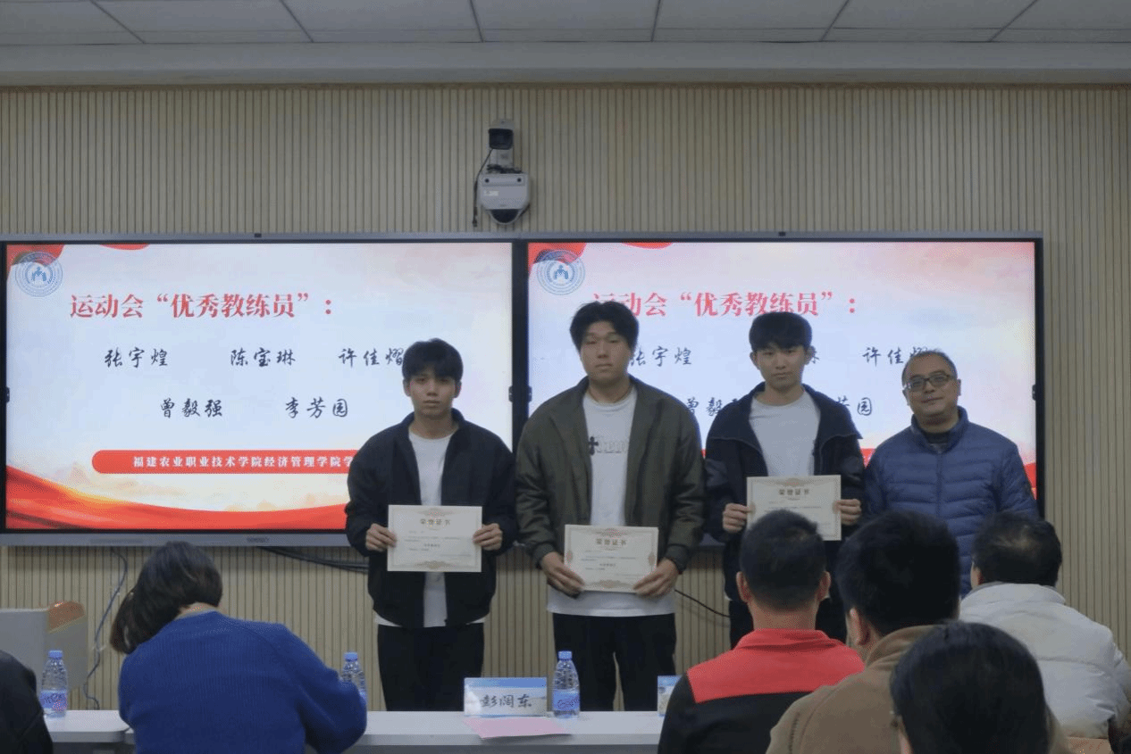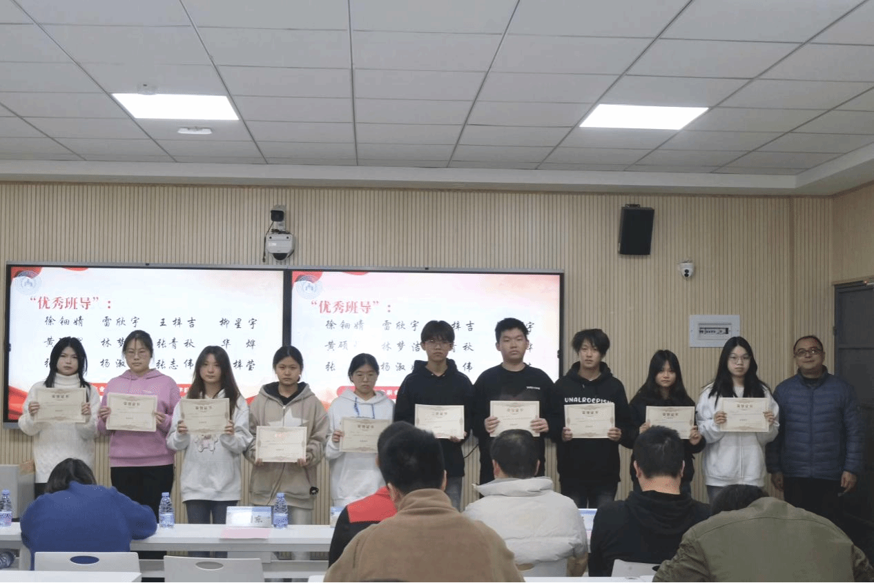 2025年1月2日,经济管理学院在教学楼203举行第二十二届田径运动会优秀学生暨优秀班导表彰大会。经济管理学院党总支专职副书记彭阔东老师、学工办主任陈建课老师、团委书记郑琳老师以及首山校区辅导员、获奖学生代表共同参加了此次大会。