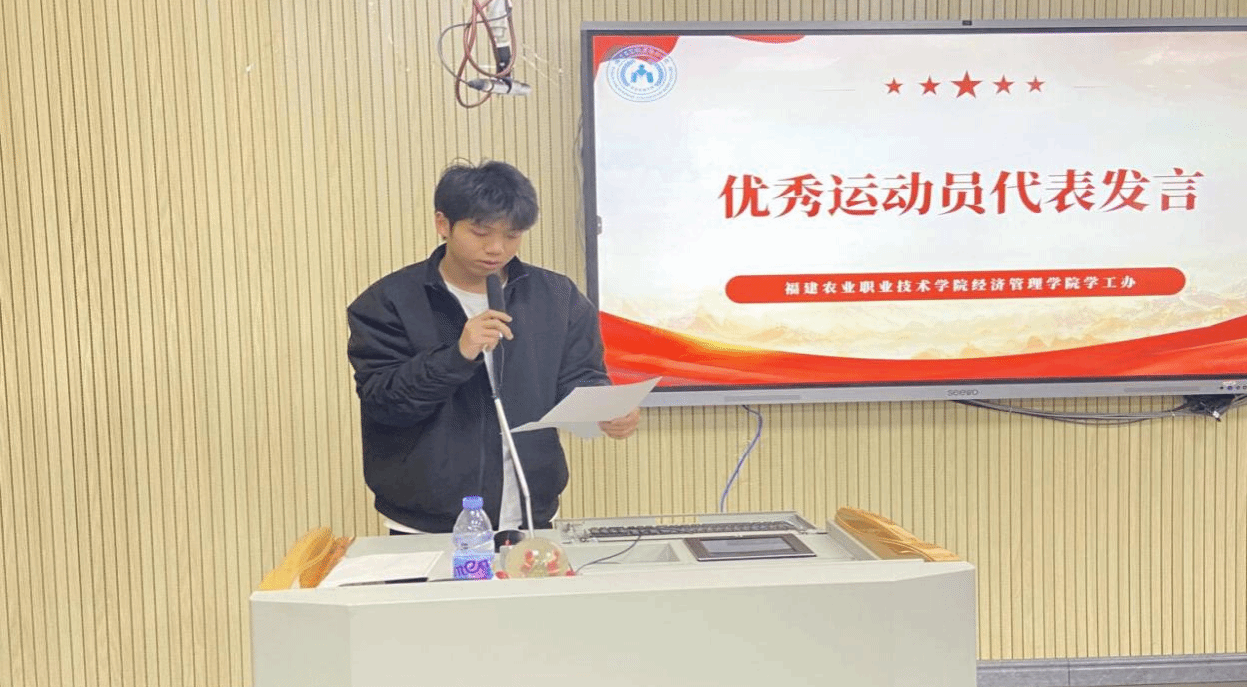 大会伊始,优秀运动员代表张宇煌发表了感言,分享了他们在运动会中的拼搏经历与收获,展现了经济管理学院学子积极向上的精神风貌。
