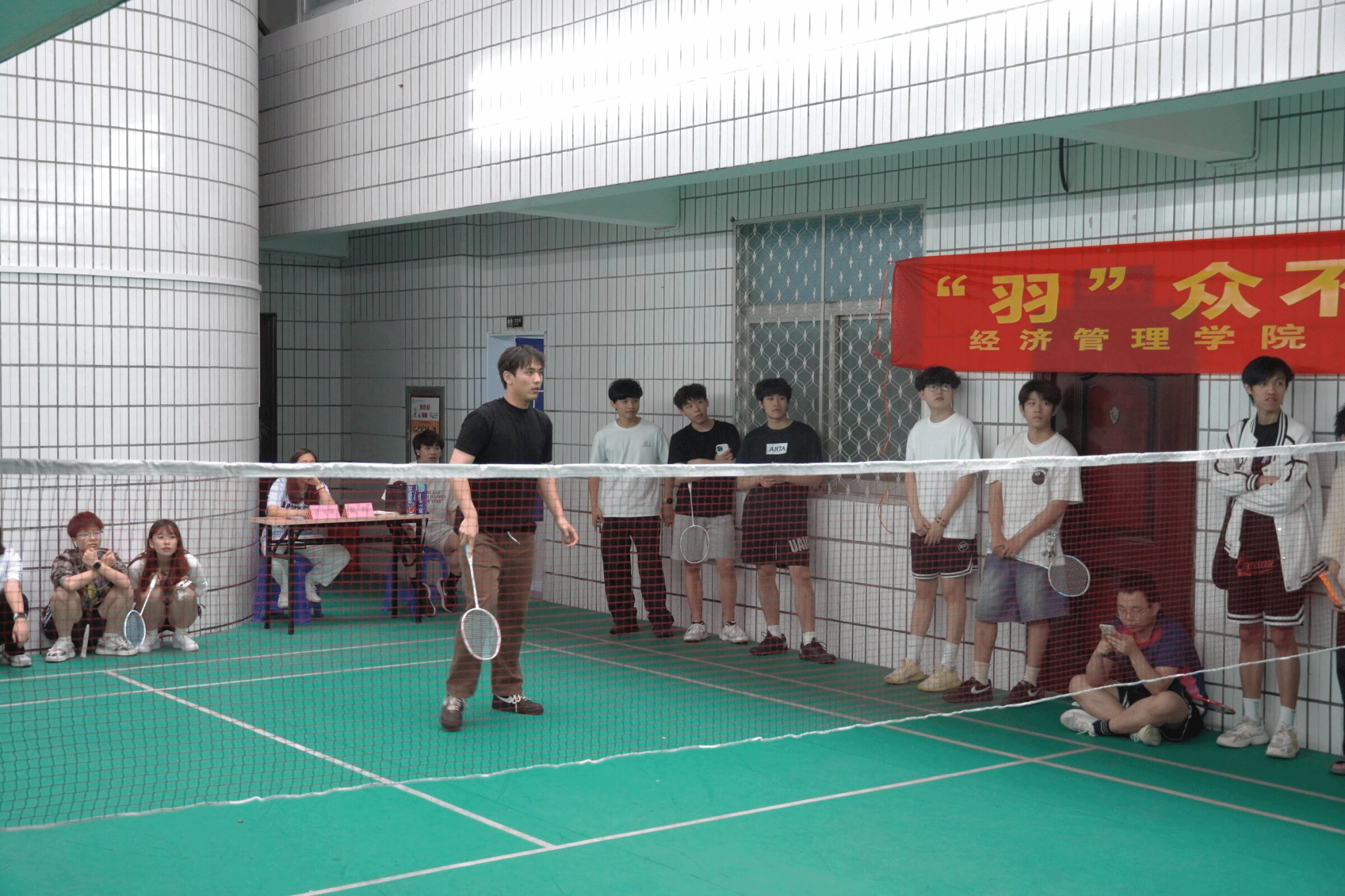 羽毛球比赛同样精彩纷呈,洁白的羽毛球在空中快速穿梭。选手们精准发球、迅猛扣杀每一个动作都展现着高超的技艺赛场边,围观同学不断为选手们加油助威,掌声和欢呼声此起彼伏。