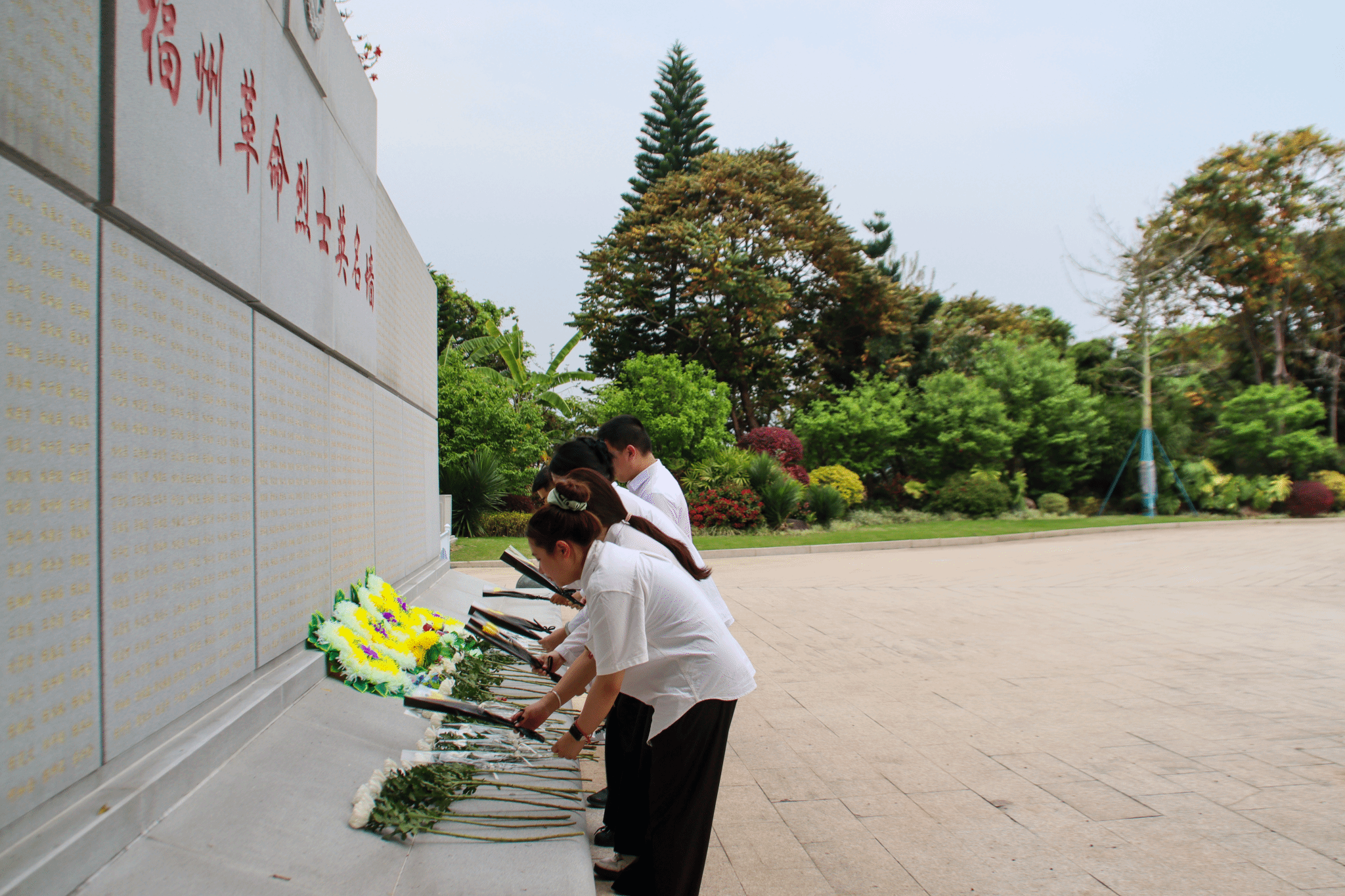 师生代表在革命烈士英名墙献花