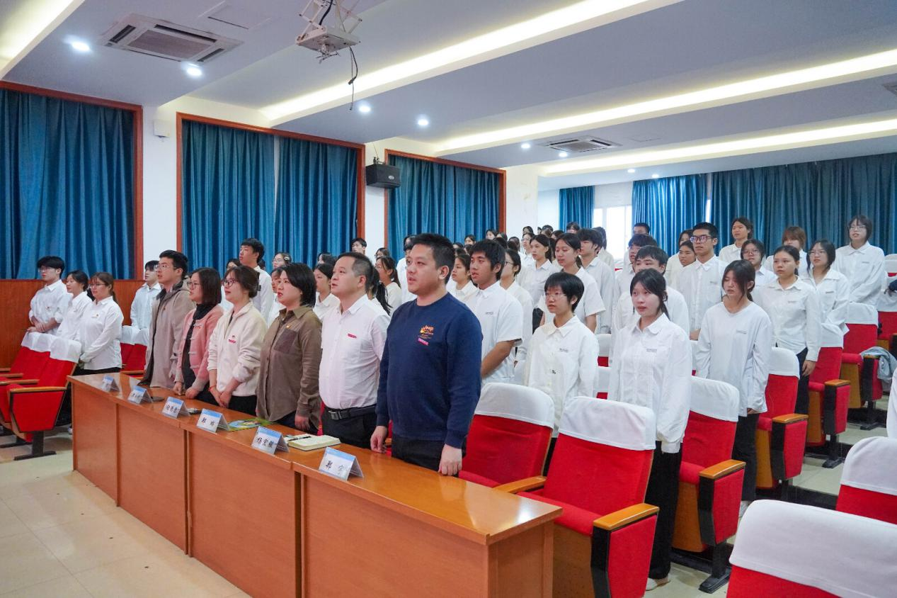 为传承红色基因,凝聚青春力量,进一步增强团组织的凝聚力和活力,强化青年学生的理想信念与责任担当,经济管理学院团委于2025年11月13日举行2025年下半年示范性集中入团仪式。经济管理学院团委书记郑琳、学生第一党支部书记杨宏强,互联网金融学院团总支书记谢德惠,辅导员代表、优秀团员代表以及104位新团员出席本次入团仪式。