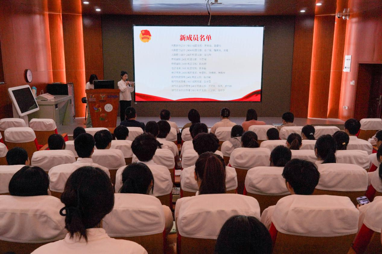 接着,现代物流管理2401班张诗颖作为优秀团员代表分享了自己在团组织的成长感悟,鼓励新团员珍惜青春时光,在思想上追求进步、学习上刻苦努力、生活中严于律己,在团组织中锻炼成长、提升自我,争做同学榜样。