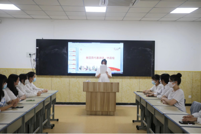 入团仪式在庄严的国歌声中拉开帷幕。紧接着,各班团支书为本班级新团员佩戴团徽,他们从佩戴上团徽的那一刻起就明白这不仅仅只是一枚小小的团徽,更重要的是多了一份责任与使命。在团总支书记郑琳老师的带领下,在鲜艳团旗的见证下,9名新团员右手握拳,进行了庄严的宣誓。新团员代表施惠敏同学首先发言,她表态在今后的生活和学习中,不断地超越自我、起模范带头作用,尽心尽力为学校、班级作贡献,力争成为优秀的共青团员和德才兼备的人才。老团员代表林嘉榕发言时表示身为一名团员,应当起模范带头作用,努力完成共青团的各项学习和工作任务。最后,团总支书记郑琳老师再次向各位新团员表示热烈的祝贺,也希望广大团员青年筑牢信仰之基,勇立鸿鹄之志,在青春的赛道上奋力奔跑,一起向未来!