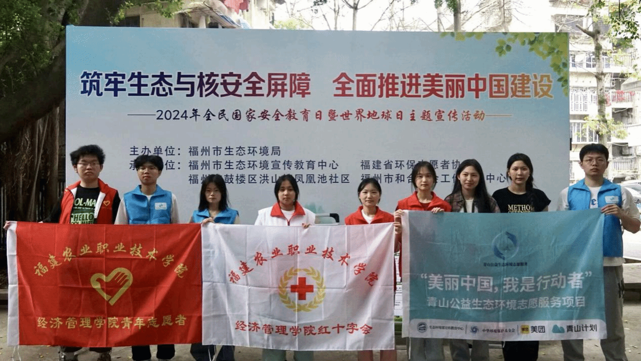 地球保护千秋计,生态平衡万代长,良好的生态环境是最普惠的民生福祉。4月17日,由福州市生态环境局主办,福州生态环境宣传教育中心、省环保志愿者协会、鼓楼区洪山镇凤凰池社区、福州和合社会工作服务中心承办的“筑牢国家生态安全屏障,全面推进美丽中国建设”——2024年全民国家安全教育日暨世界地球日主题宣传活动在福州文林山革命英烈纪念园东大门广场开展,经济管理学院组织学生志愿者参加了本次活动。