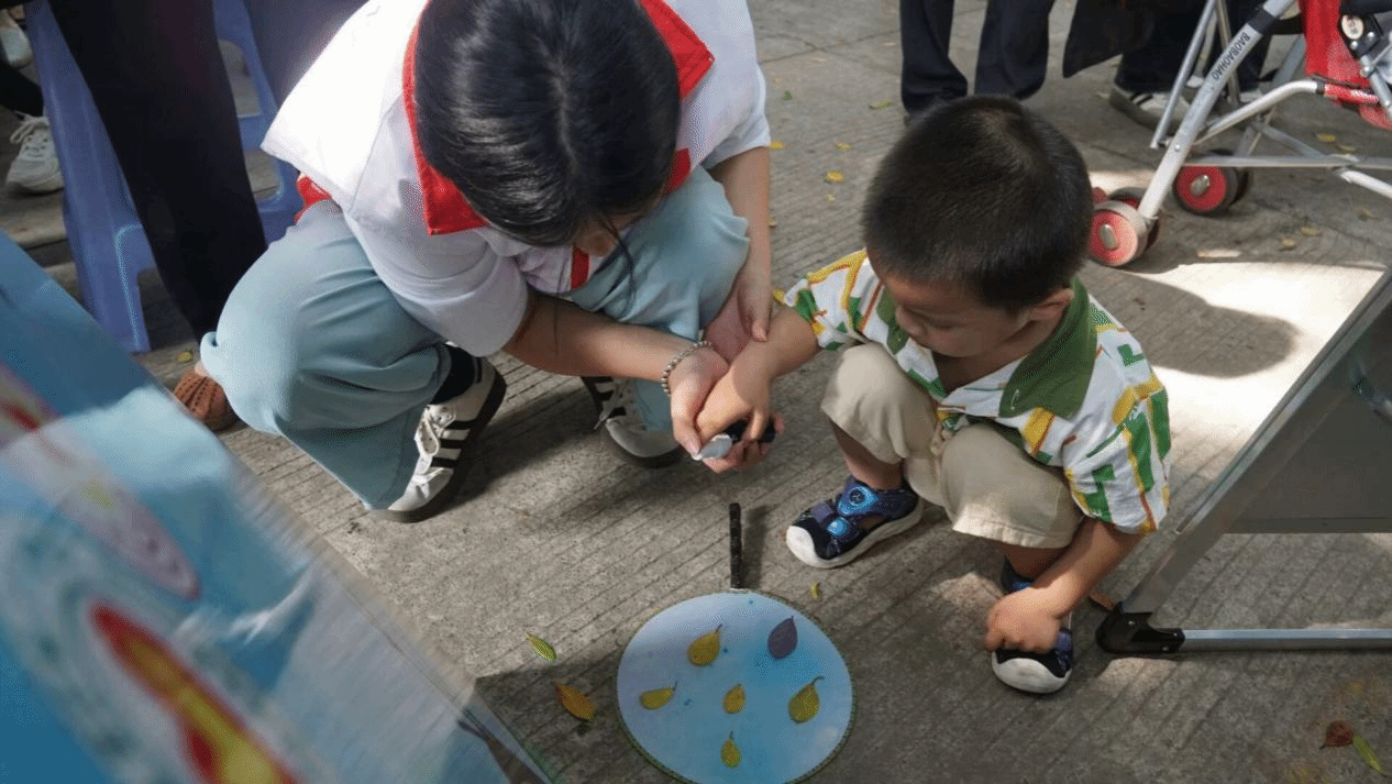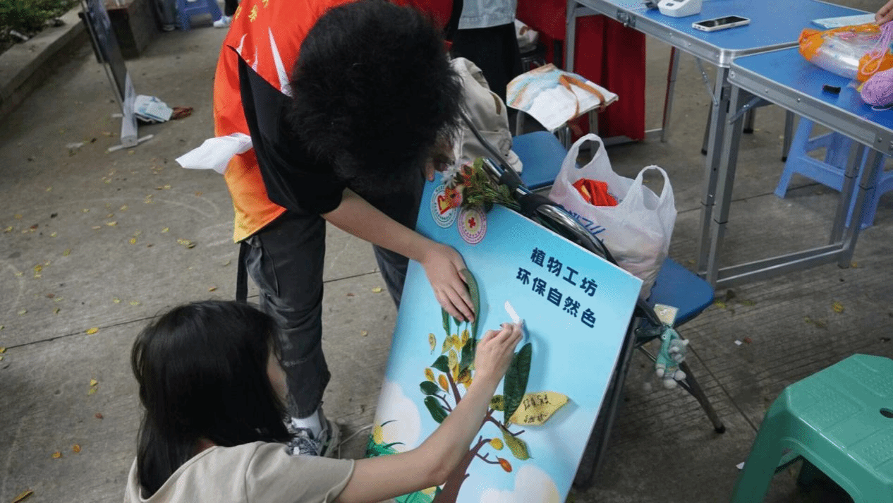 活动现场,学生志愿者参与了环保知识科普,并组织往来居民就地取材制作环保许愿树、植物喷画团扇、环保风铃等。通过系列环保活动,让广大居民更深刻的了解环保知识及垃圾分类的重要性。