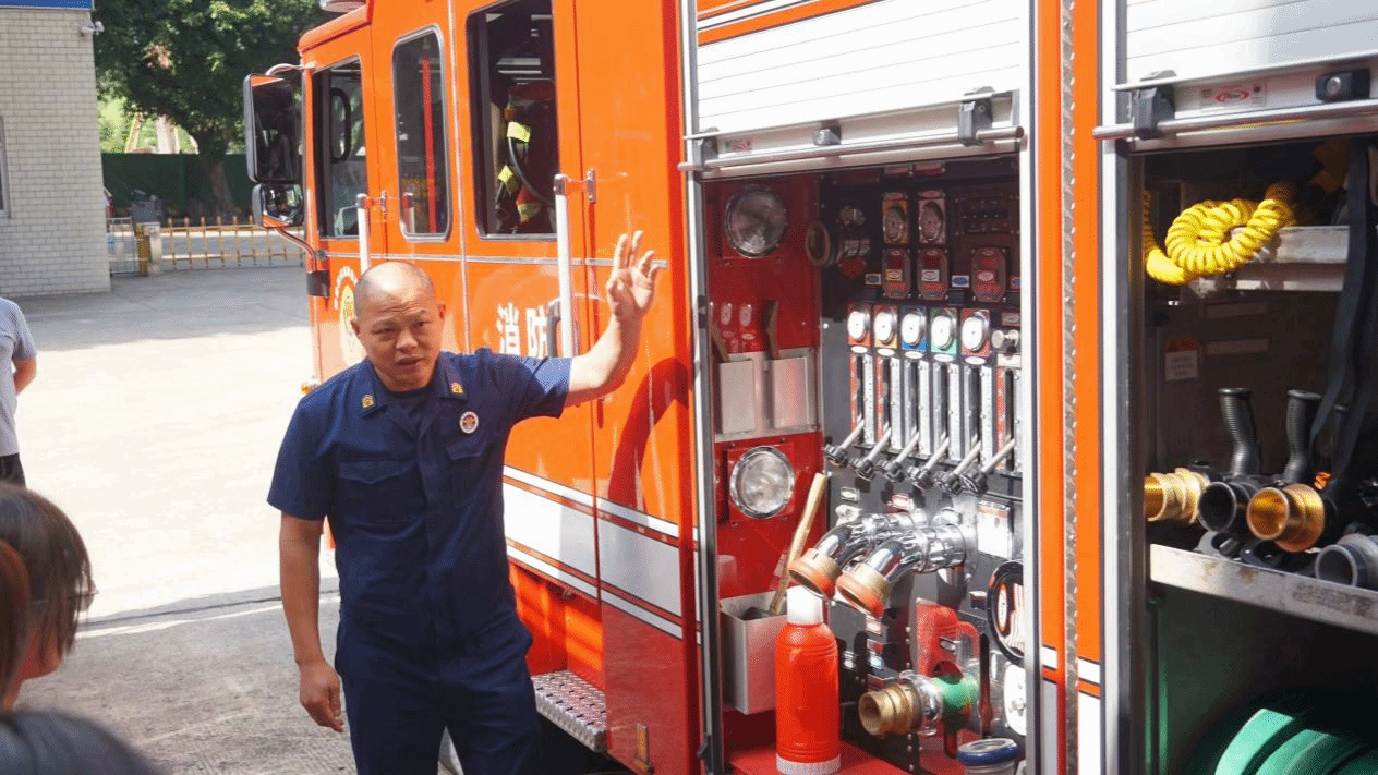 来到室外,消防员组织同学们参观了消防车库,并逐一介绍了消防车的不同功能与使用情况。经过消防员的专业讲解与案例分享,同学们不仅进一步了解了消防知识,也体会到了消防工作的重要性以及消防工作的艰辛与繁琐。同学们掌声雷动,为消防员的辛苦付出手动点赞!