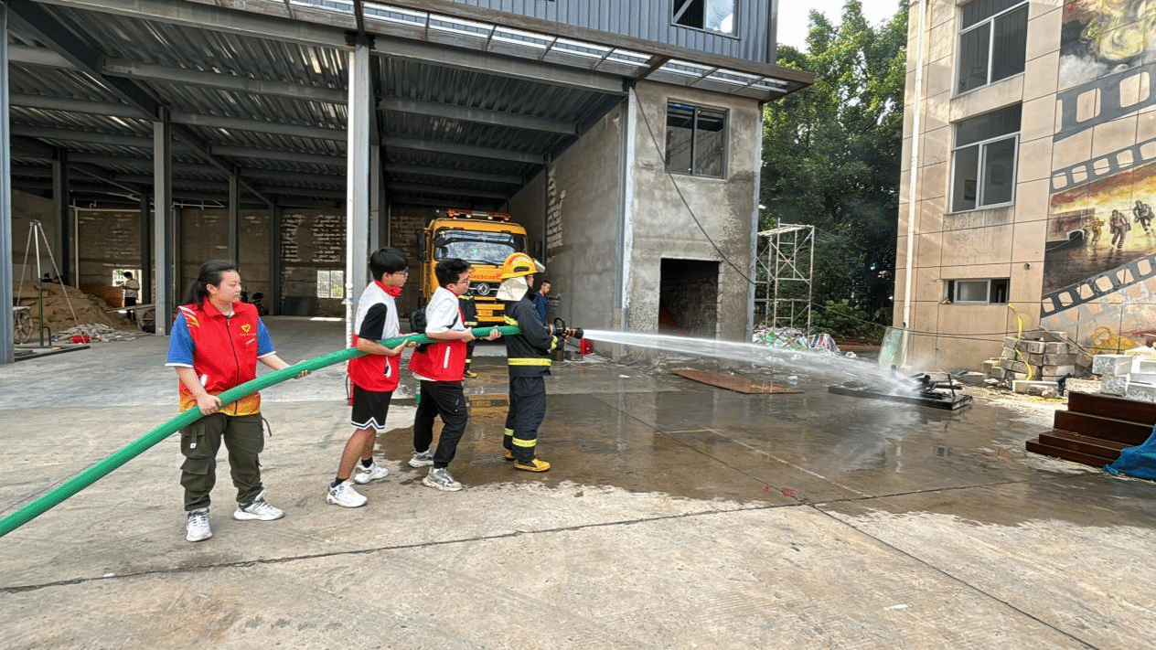 在互动环节,同学们动手尝试逃生结的绑法,学会了在遇到火灾时该如何运用被褥、床单、窗帘等身边常见事物进行自救的方法。在消防员的指导下,几位同学被邀请一起体验了高压水枪灭火的过程。活动时间随短,但是同学们都感觉收获满满,参观学习社会活动圆满结束。