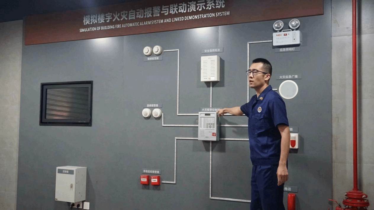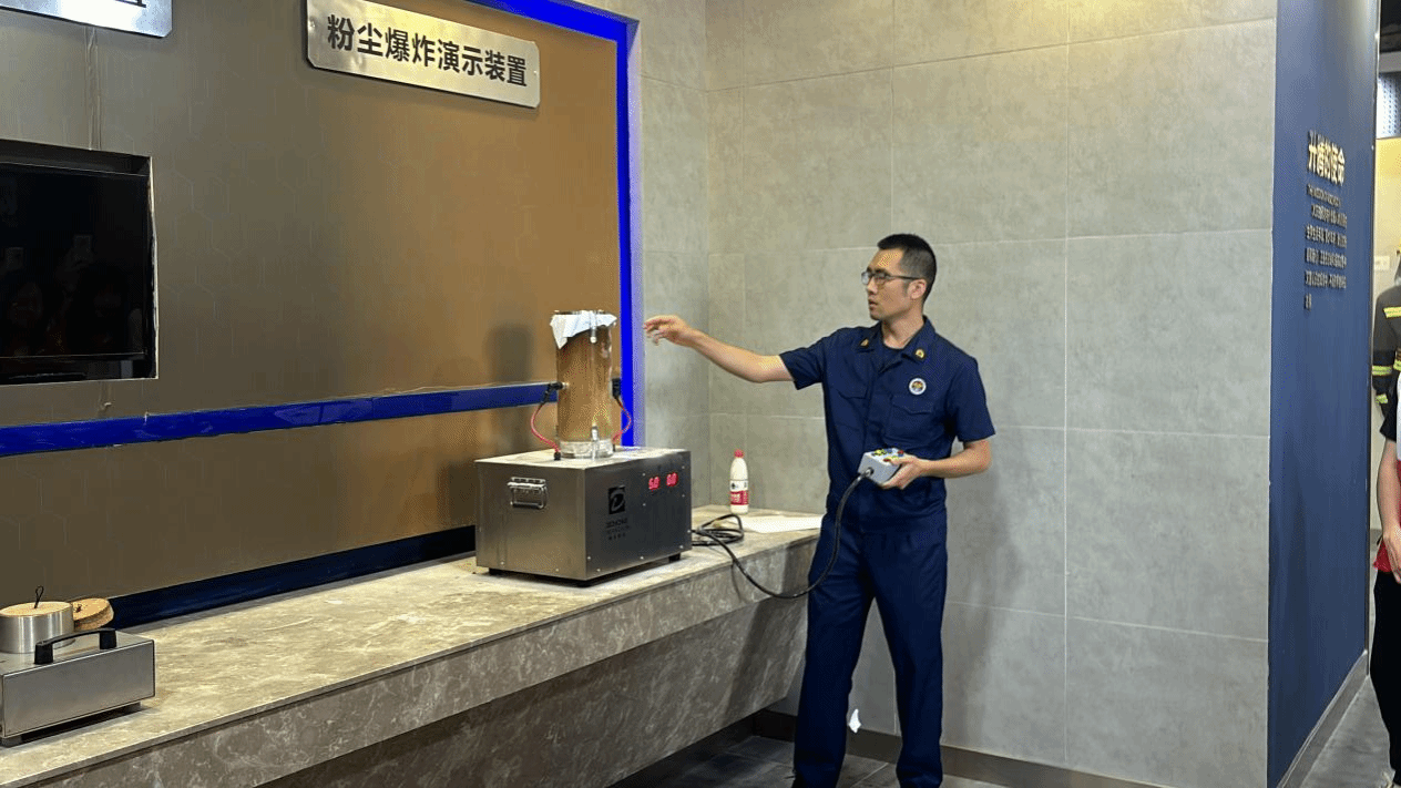 在消防员的带领下,同学们参观了消防及地震安全体验中心。在体验馆内,消防员介绍了楼宇自动报警系统与联动演示系统、粉尘爆炸模拟演示等常见的消防知识,并与同学们进行了互动问答,氛围轻松且融洽。