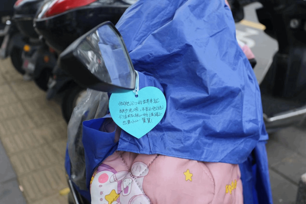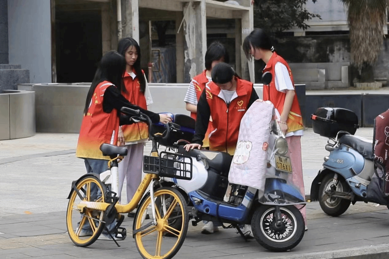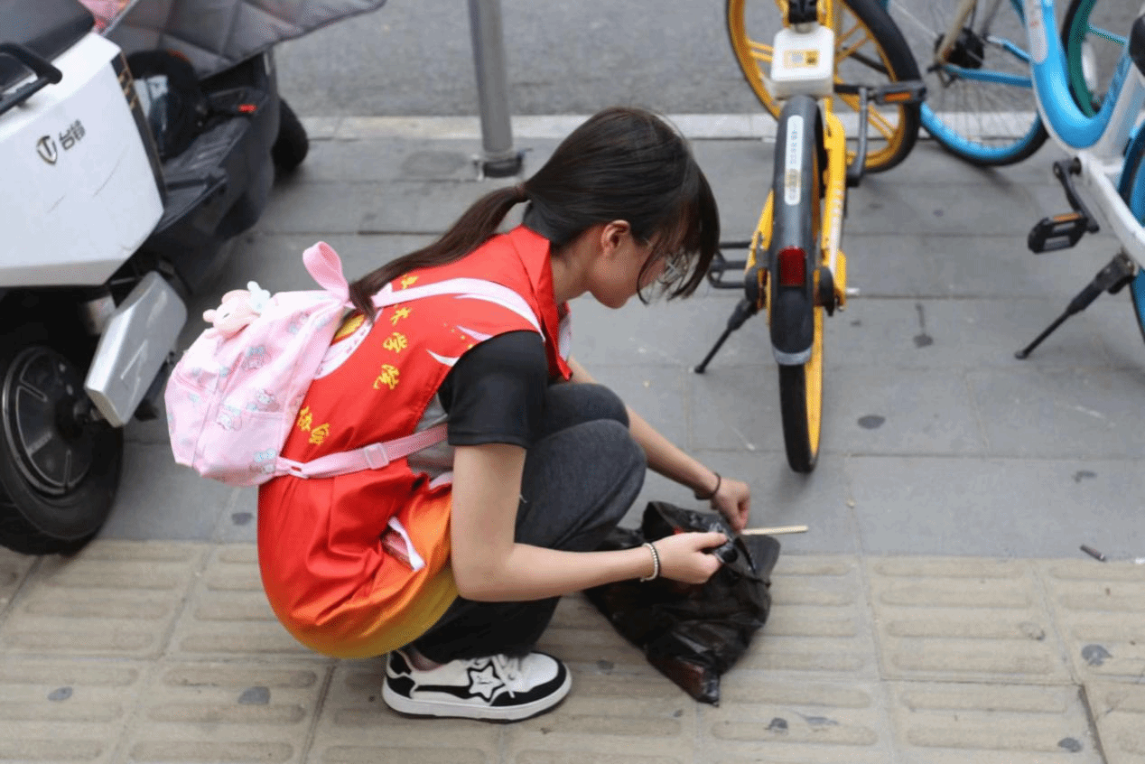 活动当天,志愿者们携带清扫工具,分成若干小组,负责不同区域盲道清理工作。他们清扫落叶、拾捡垃圾,清理占用盲道的自行车和电动车,确保盲道畅通无阻。志愿者们还在电动车上放置温馨提示小卡片,向过往市民分发书签提醒卡,提醒广大市民:盲道是一座城市道路建设的重要组成部分,是视力障碍群体安全出行的根本保障,请共同为视障人士守护“脚底下的安全”。